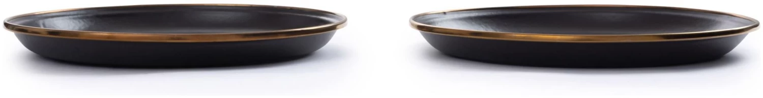 Enamel Dishware & Cookware. Zoiets kan alleen Barebones maken: Prachtig geëmailleerd stalen serviesgoed en kookgerei. De stalen schalen en pannen maken elke tafel mooier: of u nu buiten eet of een beetje buiten naar binnen brengt. Elk item heeft een met de hand afgewerkte koperen rand, waardoor het unieke stukken worden die toch samen een geheel vormen.
