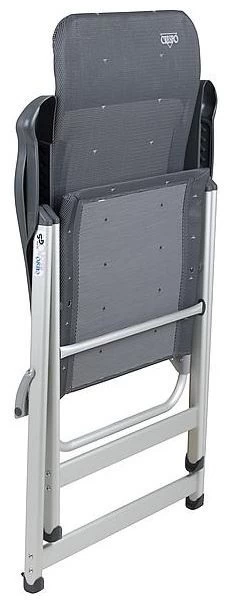 Een unieke en één van de meest compacte standenstoelen in de markt (slechts een dikte van 7 cm!). Deze stoel biedt maximaal comfort door de in 7 standen verstelbare rugleuning. Zowel de rugleuning als de armleggers zijn ergonomisch gevormd. De stoel is voorzien van een geanodiseerd H-frame voor extra stabiliteit en stevigheid. De stoel heeft een brede (50 cm) en een diepe (43 cm) zit met een zithoogte van 48 cm en een ruglengte van 81 centimeter. Door zijn unieke ontwerp is deze stoel zeer compact en daardoor gemakkelijk mee te nemen (lxbxh: 113x67x7(!) cm). Maximale belasting: 140 kilogram. Als beste getest door de ANWB en consumentenbond!