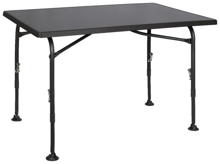 - Plateau Aircolite: résistant aux intempéries, à la chaleur et aux rayures Hauteur réglable de 61,5 à 76,5 cm Dimensions pliées: 120 x 80 x 7 cm (lxlxh) Poids: 11,3 kg Compact et convivial Les dimensions de la table de camping pliée sont de 120 x 80 x 7 cm (lxlxh).